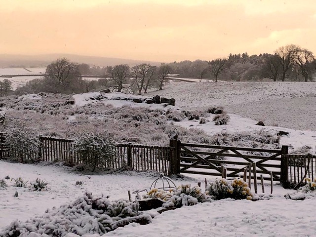 We go down to the other end of our field to put a new New Zealand style latch on the gate, refill the bird feeder, watch for avian visitors with the binoculars, pick up and haul back more branches to feed through the chipper or logs to extend the established hibernation habitation for amphibians around the garden pond. One day Harry & I see three roe deer does break cover from the willow carr below to lope across the open field, white rumps bouncing away as they flee.