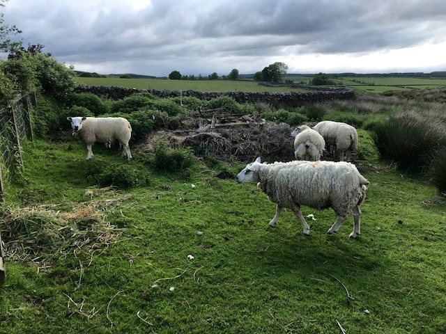 The Texel tups have been taken off our crags after a long residence and the ewes and their fat lambs let loose to graze and fertilize the newly mown emerald green meadow over the wall. I’ll miss the rams for their utility in consuming waste green material we’d no room to compost. They were such unfussy eaters and the ready meal packages of fresh grass cuttings in particular always appealed. As soon as I got the mower out they came up to the fence, ready to snack.