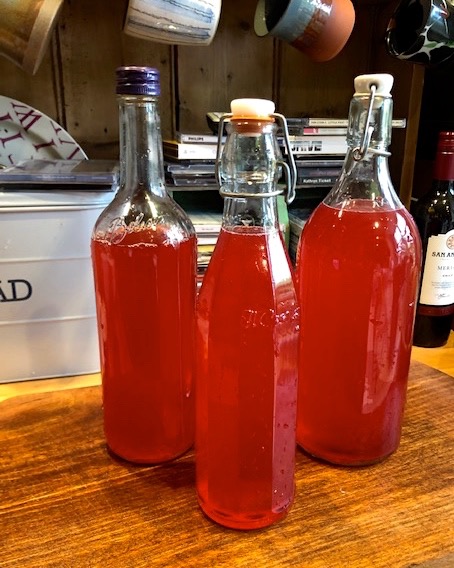 Last of the apples are being gathered for juicing. From the pink colouring bestowed by sweet red Katy & Discovery varieties to the sharper notes of James Grieve they all make for simple welcome refreshment. In previous years we’ve shared our crop with ever opportunistic blackbirds. No peck attacks from them this year but much increased attention instead from gangs of wasps who mine the produce while still on the bough. They scramble from their burrowing to fall earthwards or fly drunkenly off when I (very gingerly) pluck the fruit to drop into my basket.