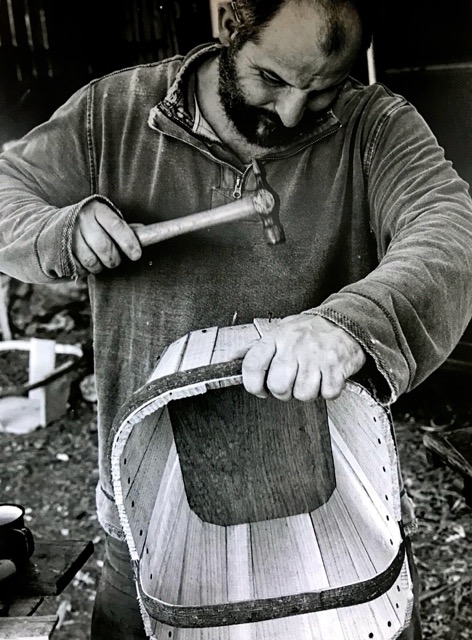 Utilise a size two Devon stave basket for this task – my birthday present for Kim this year – made to order by John Williamson, a charcoal maker and woodworker who lives and plies his craft in the Teign valley. Fashioned at the work bench from locally grown ash (handle & trim) douglas fir (staves) and oak (bottom) these heavy duty baskets were traditionally used across the county for the carriage of goods produced in kitchen, dairy, garden and orchard.