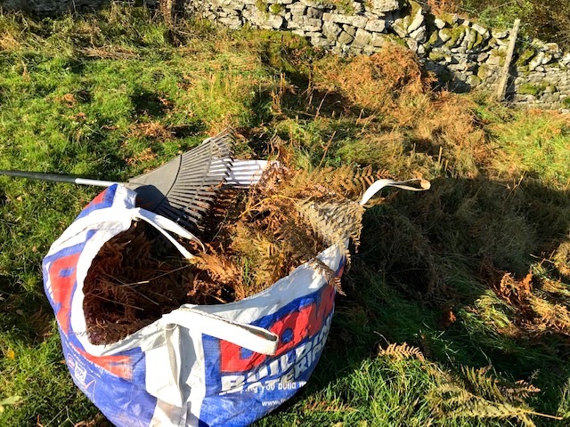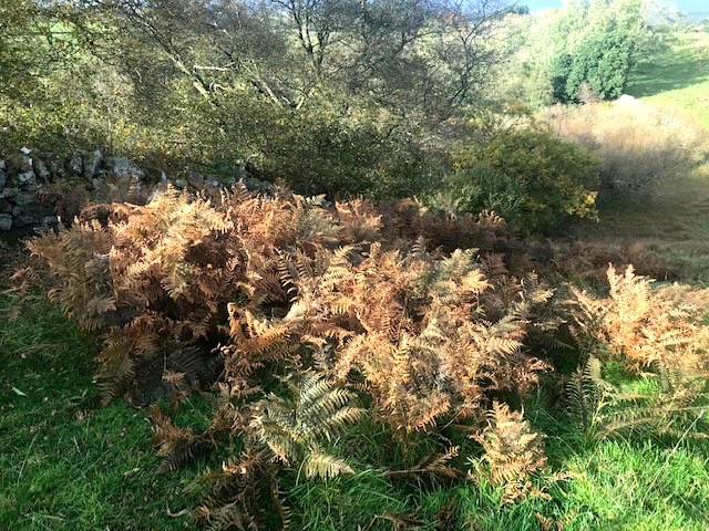 Our own field needs attention. We’re still waiting for the waller to come to patch our stretch of drystone boundary. Meanwhile invasive bracken from our northern neighbours wood has been steadily increasing its claim on our better grassland so I’ve been down and taken the scythe to it. Makes for hot work and given its carcinogenic reputation have had to wear a mask to prevent inhaling any spores from the dying fronds. The following day loaded and dragged two dumpy bags worth up to the house to spread as ground cover under the mixed tree cover of our eastern shelter belt.