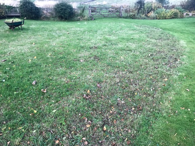 Last grass cut of the season. Hurray! Put the machine away now until next spring. Do a final scarify and rake around the meadow’s east border. Pleased to see the west side is now firmly fixed with plantain and other perennial plants established over the previous two seasons of wild flower sowing. In late September I did another, smaller seeding of annuals; more yellow rattle and a ‘butterfly mix’ that included foxglove, red campion, knapweed and scabious. I’ve collected burnet, fleabane, meadow vetchling and common tare seeds from walks along the lane and have broadcast them in the harder to colonise heart of the meadow. Next Spring should bear witness to the results of these labours.