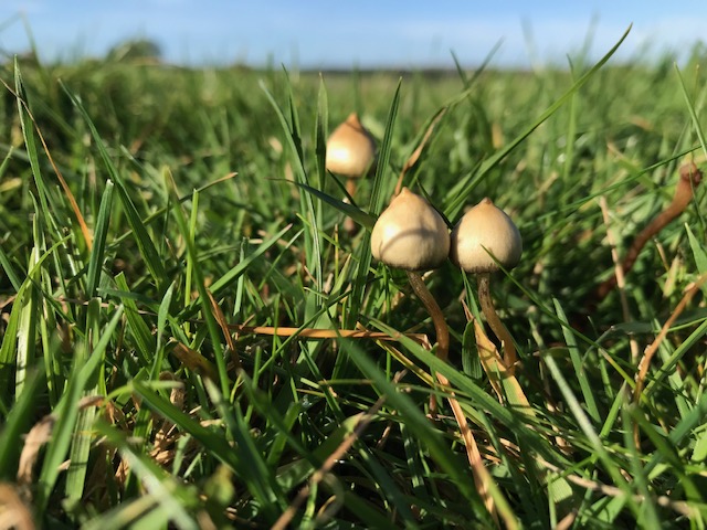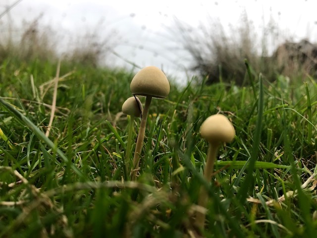 Fungi are everywhere this autumn, a good year for them. Apart from field mushrooms, gathered to add extra flavour to a Sunday breakfast fry up or grace a supper dish, I spy non edibles which I believe to be Protostropharia semiglobata (above) These are small (10-30mm high) slender mushrooms with yellow to pure white caps, common on land like our neighbour’s sheep dung enriched permanent pasture. In youthful years I’d have been far more interested in cropping the similar looking fungi of the Psilocybe genus, (below) otherwise known as magic mushrooms.These days I leave them strictly alone but wonder in passing what effect, if any, they might have on flocks of grazing stock at this time of year.