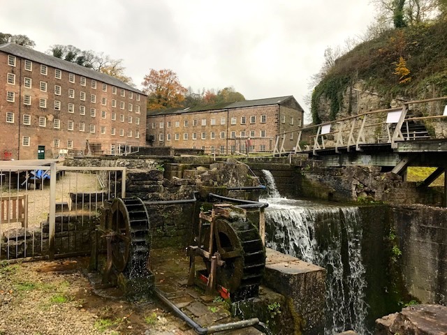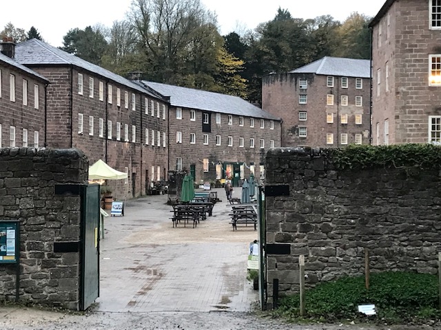 I particularly appreciated the section of our guided tour where a hologram version of Arkwright, as played by a suitably portly be-wigged actor, took us through the original mill’s interior floors that no longer exist, but are here miraculously recreated through impressive audio-visual effects. Some of my family on dad’s side worked in the Lancashire cotton mills and I remember aunt Annie telling me about the noise and dust generated by machinery at full pelt, so hearing it recreated here informed me about conditions as much as any script. Annie had a loud clear voice too. She needed one (alongside sign language) to communicate at work with the other mill lasses back in the 1930’s.