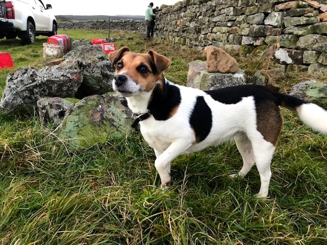 On better weather days Ben had brought Daisy, his seven year old tricolour Jack Russell, a rescue dog of cheeky and determined character. (“Meet the Boss” Ben quips). After giving me a thorough bark and sniff going over she follows me as I walk on to cut an overhanging small tree threatening to topple fencing at our field’s end. On the way back, dragging branches for the chipper, she circles me with great excitement in fast flowing loops. Ben says Daisy ran a weasel down the other day when they were working away. He’s not happy about it but accepts that’s what terriers do and there’s not much he can do about it. The next morning Daisy appears in the garden, barking long and loud at the kitchen door…loosely translated as ’Where are you – we’re waiting’. I emerge, togged up for work and weather, and am closely escorted to join her human companions. ‘I told you she’s the boss’ laughs Ben.