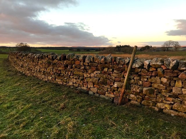 The brothers are rewilders at heart and comprehend the bigger picture outside their own rural occupations. They’re part of the wider nature friendly generation working for a more coherent sustainable future for UK agriculture. Members of an extensive local farming family both boys grew up on a holding just to the north of Hadrian’s Wall, below the Great Whin Sill ridge on which it stands, at its most remote and highest point. We speculate that might have been a factor in their becoming professional wallers. I ask how they manage working together as brothers and Ben says ‘We get along fine….As long as there’s a wall between us.’
