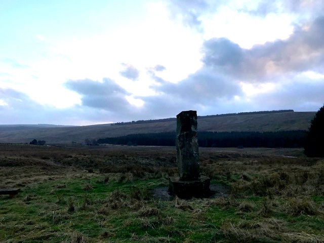 A handsome cluster of grey stone farm buildings embedded in the shoulder of hillside to our right turned out to be Deadwater Farm. The monument marking the source of the north Tyne river lies on its land, and we need to walk a little further to the actual border with Scotland to pick up the permissive path that leads us to it, some 300 yards uphill.