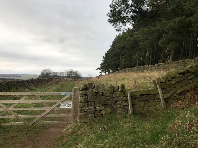 A narrow, fence lined path parallels the railway before joining a broad bridleway that crosses it by former railway workers cottages. With room to breathe again we made the first steep ascent of Warden hill, through stone walled pastureland and alongside mature woodland. The Newcastle-Carlisle was one of the first intercity lines built in England and revolutionised the economy hereabouts. The view up the broad south Tyne valley gives few hints of it today, but from the mid 19th to mid 20th century quarries and coal mines linked to the (now closed) Fourstones station and sidings would have dominated the scene.