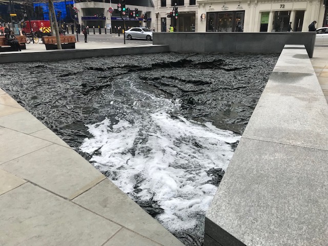 The Walbrook stream was an open inlet then, a tributary of the Thames, and not culverted, as it is has been since the Georgian era. The Bloomberg development has made possible an interesting water sculpture, commissioned to reflect the hidden London river beneath. I can testify it’s a pleasant spot to sit and ruminate amid the passing noise and bustle of the country’s financial hub