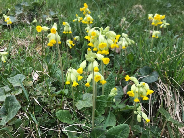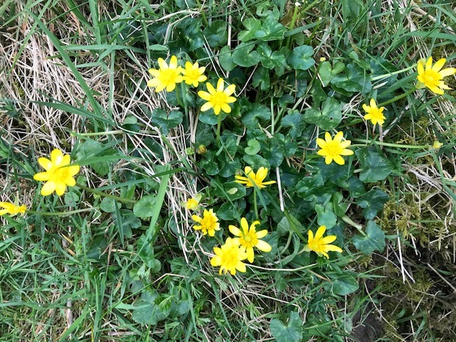 We navigated a burn with its steep wooded banks, yellow bright with celandine and cowslip. A sheltered damp meadow here produces a wealth of flowers in summer. Wherever possible mesh tree guards used instead of the old style non-biodegradable plastic ones, an exercise supported by the Woodland Trust.