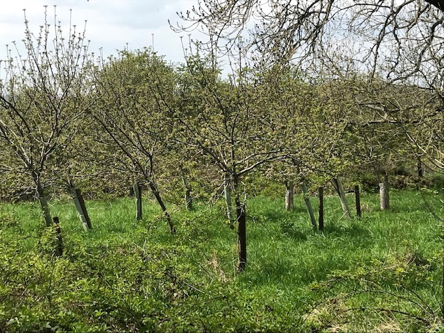 One field we strolled through was bordered by a line of dead and dying Ash trees, in various stages of decay, due to die back. Charlie is leaving them standing on the basis they’ve a chance to produce disease resistant seeds and their passing still enriches the natural food chain. Other large grass leys have mini-copses of trees planted protected by stockproof rectangles of wood planks. Once established these ‘arboreal fountains’ should provide 360 degree cover and shelter for stock, whatever the season.