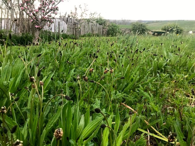 The meadow, of all my ongoing garden projects, is the one most in flux. The garden lawns link and frame all main areas – beds, borders, woodland and shrubs – but a large roughly triangular section is always left unmown. I started the labour intensive process of turning its top corner and edges into a flower meadow. Four years in and already we see an increase of emerging plantain (deliberately seeded) as well as meadow cranesbill and cow parsley (self seeded). Most of all though the yellow rattle liberally sown every year is spreading into the heart of the growing sward, as intended. This annual is key in meadow creation, being a semi-parasitic that lives on the roots of dominant grasses, in this case rye and couch, weakening them to allow more delicate meadow flowers to take purchase and establish. There have been successive waves of predominant flowers dominating from the clay seed mix I used – first poppies, then marigolds – so we await to see what this season throws up as herbal front runner. A couple of weeks ago I broadcast lesser knapweed in spots where random daffodils had been growing and then added the displaced bulbs to the massed line up on the roadside out front. The linear spread of established daffodils there put on a cheering show for the passing world, from March into April and even now, into May.
