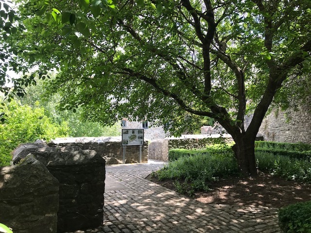 The contrast of formalised greenery with walls of grey marble stones was striking. A welcome peaceful haven stepped back from the heart of the old town, overlooking the long narrow gardens of New Street’s cafe bars with their shaded outdoor seating. (proved ideal for a laid back lunch, al fresco).