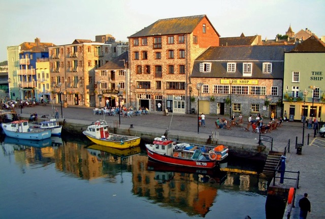 This is the historic heart of the settlement that grew to be known as Plymouth and the C14th castle on the hill the Barbican led to only exists as a fragment today. The modern day harbour walls are crammed with commemorative plaques, most famously the one recording the sailing of the Mayflower for America in 1620. Over the road that leads to the hoe and its outstanding views, the great grey cliff like bastions of the Royal Citadel, built in the wake of the civil war and still a military base, marks one boundary of this eclectic maze of narrow cobbled streets where post war social housing rubs shoulders with expensive penthouses. Today the harbour is chock full of yachts moored at pontoons while the old Victorian fish quay has become home to a variety of eateries and artisan outlets. The new quay, relocated across Sutton harbour, thrives as a major landing and market for the commercial fishing community and the neighbouring national aquarium draws the crowds .