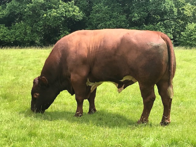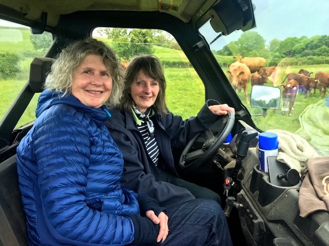 Before Tom could get back to join us for that exquisite lunch Janet had invited us to join here in the all terrain vehicle on a jaunt down the lanes to their riverside pastures for an inspection of their herd of South Devon cows with calves at foot. The sire, a pedigree Beef Shorthorn bull – informally dubbed Anthony – was beached recumbent on the sward. Janet got out to give him a firm but gentle poke so he’d heave himself up and walk on a few yards before resuming his rest. That way she’d know he was in good working order with no mobility problems.