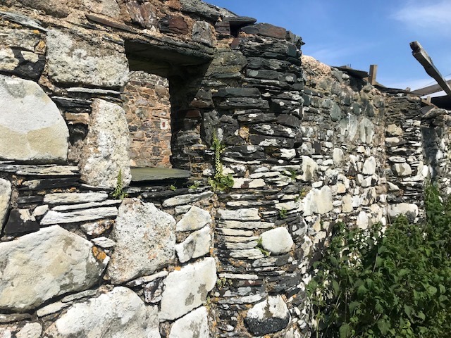 After a great catch up conversation over lunch we stepped out again, pausing to admire the terrace of house martin dwellings under the eaves before a trip down to the track to the original farmstead over the brow. The new farmhouse where our friends live is a Duke of Bedford model farm dating from the 1850’s. Tom’s forebears were the Duke’s tenants, who’d come up from Cornwall to run this then state of the art agricultural holding. The new structures superceded the old longhouse style dwelling, partly embedded into the field beyond, and connected at right angles to its barn.