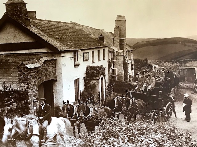 Parked at the Blue Ball Inn, a Grade II listed building dating from the 17th century, and clearly popular with visitors down the years as this wonderful photo from late Victorian times shows. We returned for an outside lunch here after a walk round Countisbury Head, which is in the care of the National Trust.