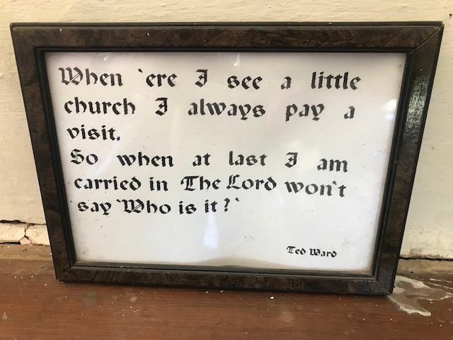 Countisbury’s name is deprived from the old English Cune + Burgh meaning camp on the headland and it was here that the Saxons defeated a Danish invading force in AD878. The little parish church of St John the Evangelist, tucked into the hillside with its graveyard just above the pub car park, was a modest but charming old place and we particularly liked this sign by the alms box.
