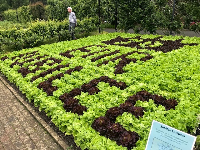 Visiting over the platinum jubilee holiday so amused to encounter this neat and witty leafy tribute to HM The Queen from the gardening crew…
