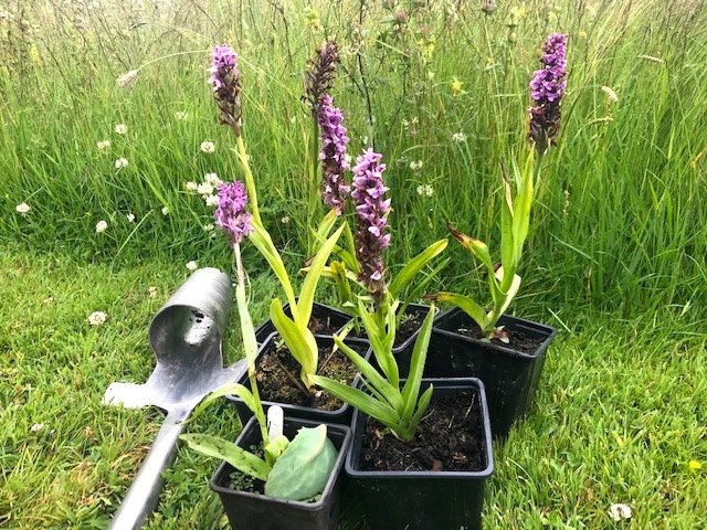 The common orchids bought at a local nursery’s closing down sale last summer, re-planted as plugs in the meadow borders have, to my great delight, taken and spread. Having a clump of birds foot trefoil making a debut in the most intensively prepared top triangle of meadow made me very happy too. I hope it too colonises next year. And that, in essence, is the joy of any meadow a gardener creates. You never know what will happen year on year as the character changes with the appearance of different plants, whether deliberately planted or opportunistic arrivals.