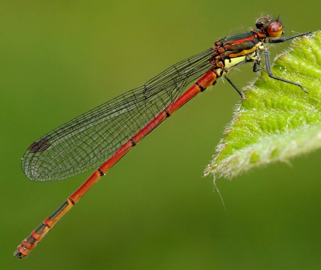 We passed a newly created wildlife pond on the wider flood plain. Lined and weighed with stones around the circumference with no planting to soften the outline it presents as bare and uninteresting. No doubt in a few years it’ll be serving its intended purpose, creating a rich habitat for amphibians, insects and water fowl. In that regard I was delighted to catch large red damselflies skimming its shallows – testing the waters as it were. We’ll come back another day to see how it’s all coming along.