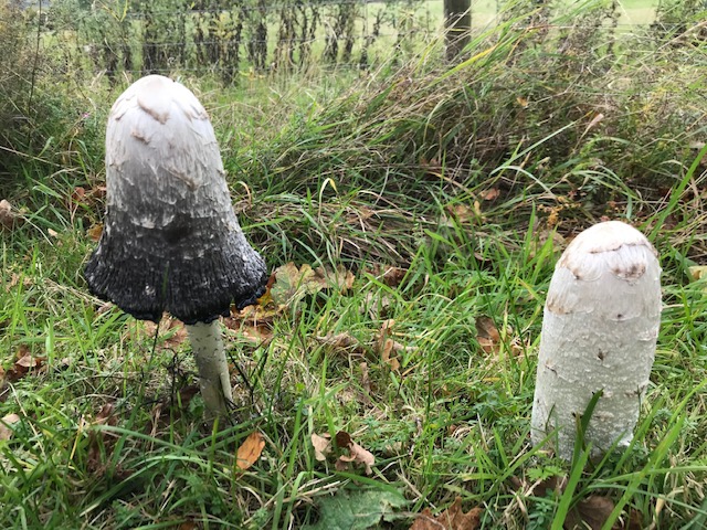 Our quiet lane also sported outcrops of shaggy ink cap mushrooms along the verges. Edible fungi, they turn everything cooked with black, and need to be consumed shortly after picking. As the name implies these delicate mushrooms can be used as ink after mixing with a little water and cloves (to fix the colour) according to Wild Food UK.