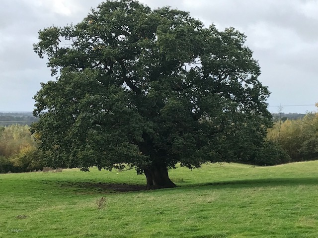 Many mature oak trees marked our walk. This one, marooned in pasture, caught my eye. Thought of it providing essential shelter and shade for countless generations of stock as well as sustaining many species of birds and insects.