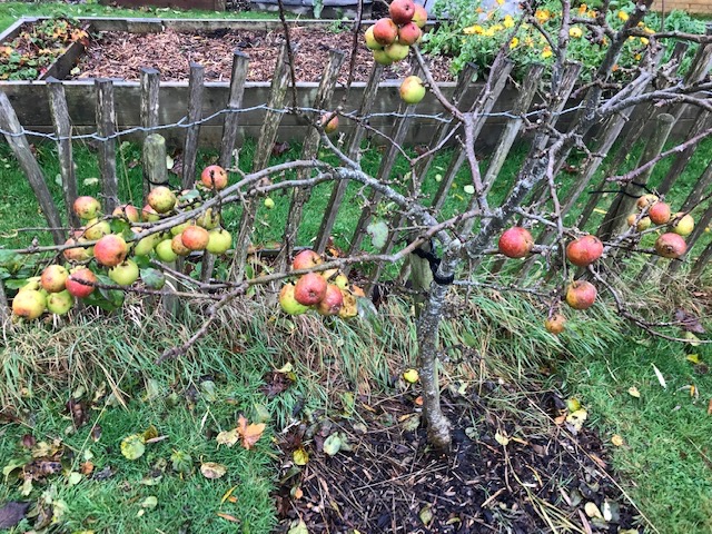 As we move into December I pick the last fruits of autumn, the little Christmas pippins, getting them in before birds finish them off. Nothing much to look at and they still cling to the bare branches. I love these cox like apples as a daily snack – they’ve a superb crispy sweet bite.