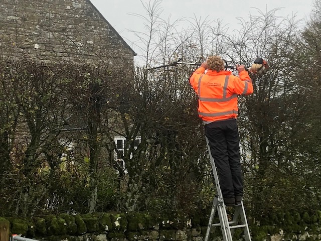 Our landscape contractor, Chris, came to give the east end’s hawthorn hedge its annual trim recently. We keep it high, not just for privacy but as a windbreak for the rest of the linear copse, house and garden. Didn’t want a formal agricultural straight topping but a softer more undulating one instead, which assistant Charley managed with his long blade electric trimmer.