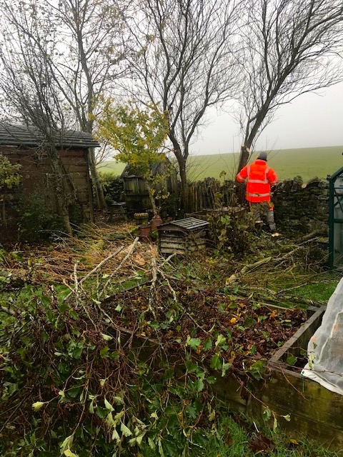 Kim wanted to give the vegetable garden and greenhouse more light and space so we sacrificed some tree cover at the top end. The willow was starting to push the field wall out too. A severe cut of the two main trunks leaves just a few shoots and these will thicken and develop over the next few years to gradually replace the lost limbs.