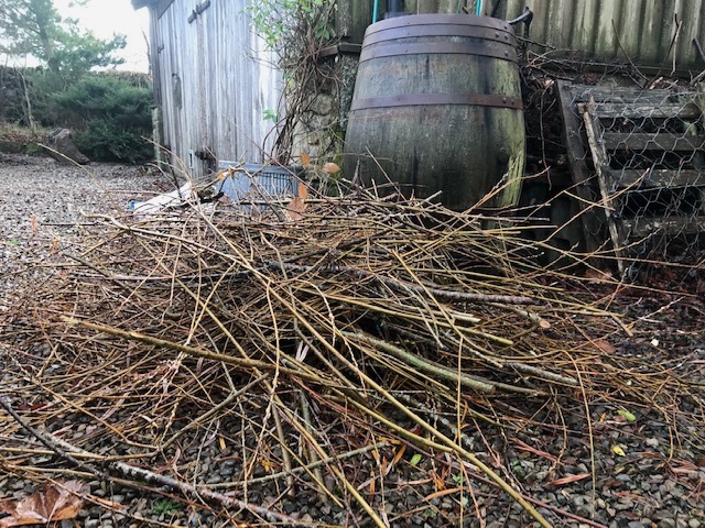 Willow accumulated from the latest cull will make easy work for the chipper, as the wands and branches being slender, straight and knot free go down its throat as smoothly as ice cream down a human’s. I’ll continue to fill the dumpy bag with these good quality easy chippings which will be used for mulching round the garden and occasionally adding to the compost mix.