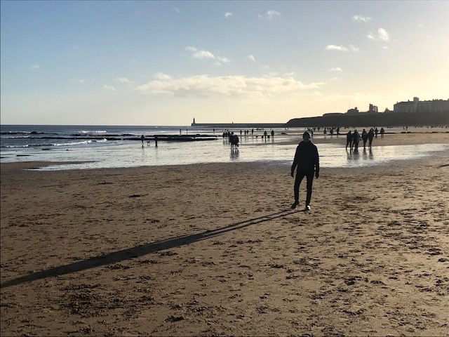 Boxing day saw us in company with the Newcastle branch of our extended family taking to the coast road on an impromptu trip to the seaside at Tynemouth. Not being the only folk to have the same idea we were lucky to find a parking space on Grand Parade. Wearing sunglasses against the sharp low light, we descended the narrow set of concrete steps to the welcome freedom of Longsands beach.