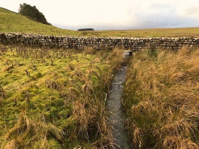 The Nag Burn runs rapidly from its culvert under the wall, which is here at its widest and most impressive point, some 3 metres plus. This would have been the fort’s main water supply for drinking, washing and bathing. The great two tower gate that once stood here dates from late in the Roman occupation, in the 4th Century AD, and was the principal ‘passport’ at this point in their great border wall. The fort’s nearby north gate gives on to a steep pitch of the dell: fine for cavalry but unsuitable for most everyday through traffic.