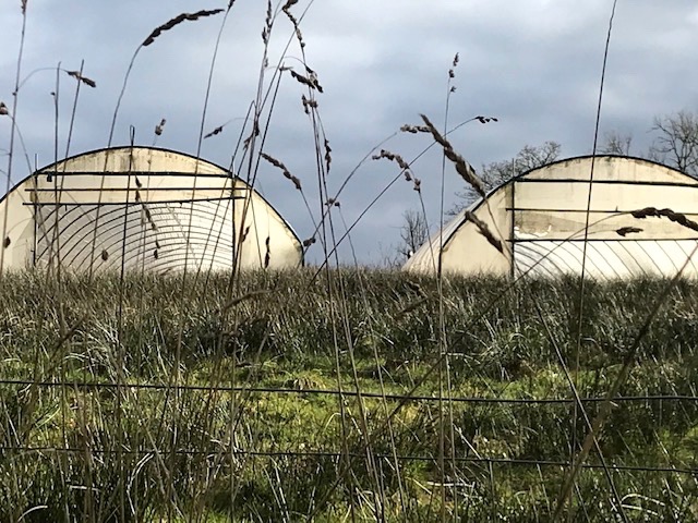 More woodland slopes with celandine, dogs mercury and dense mats of a dominant ground hugger I later discover is Greater Wood Rush, a shade loving plant of acidic soils well at home in woods. We eventually came to a farm housing cows & calves, perched on the valley edge, with an organic side line, growing fruit and veg in a brace of polytunnels.