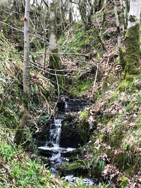 An elegant footbridge spanned the river, proudly displaying its makers seal. Our journey the other side soon brought us to steep sided former coppice woodlands bisected by a series of rivulets, which made progress along the indistinct muddy path potentially perilous in places.