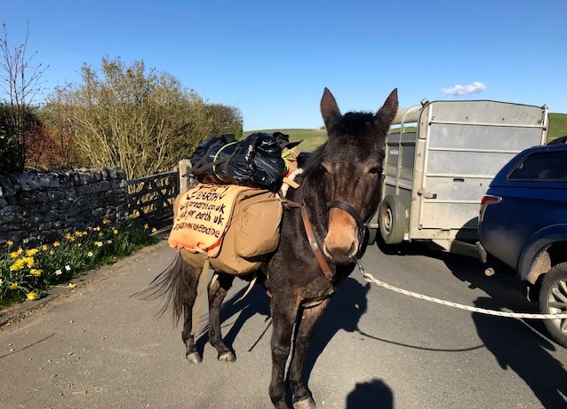 Took a break from gardening the other day when a strange sight on the road caught my eye. A woman leading what I thought was a donkey, but was in fact a mule. The young woman was called Zoe and the mule Falco. I wasn’t the only person to being drawn by this eye catching sight. A big man in a land cruiser hauling a horse box pulled up while we were talking to offer them a place to stay that night.