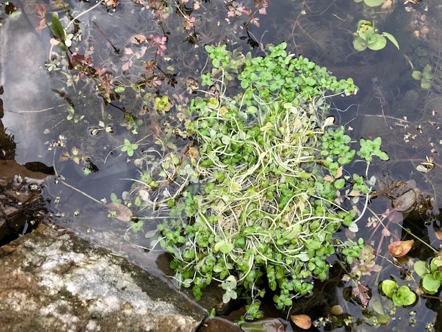 I continue to make small changes to the ponds I love so much. Have purloined some wild watercress from a neighbour’s spring where it grows in profusion. Not that we’d ever eat it – the danger of ingesting liver fluke or other nasties is too great – but it will, when confined to a pot parked in the margins, make for great cover in the new pond.