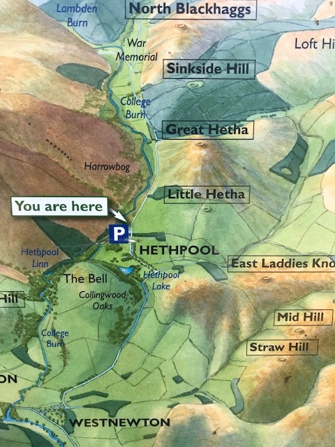 Vehicular access to the valley is via a single track road which attracts a licensed daily toll of £12 but like the vast majority of visitors we parked (for free) at the NNP Hethpool site and walked from there. This is the point where the narrow valley emerges from steep enfolding hills, many of whom boast iron age hill forts on their lofty summits. Thanks to funding from the national park a series of signposts opens up permissive paths to those hills for the more adventurous rambler.