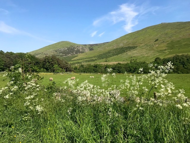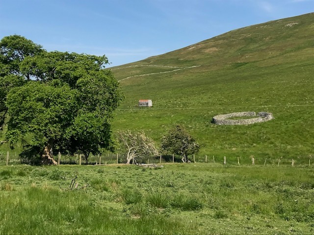 We saw a couple of stells (sheep shelters) on fellsides. One had a small cast iron Dutch barn nearby. The dry stone walls are the size and shape of a circus ring allowing the animals to find shelter from whichever way the wind blows snow or rain. From the Victorian era onwards the cattle and sheep stayed up here all year round so such places were essential to survival but these days they are taken off to lower pastures in winter. Conservation wise that fits with the older pattern of summer grazing (shielings) where the stock feed on the coarser grasses which would otherwise swamp the more delicate vascular alpine grasses and flowers. These rare plants can now once again start to thrive in the highest area of 5,500 acres, around the Cheviot itself. Approximately half that area is an SSSI (Site of Special Scientific Interest)