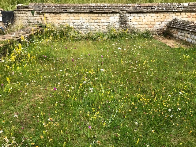 An outdoor feature I loved were the mini-meadows, literally garden rooms, developed in some of the partially excavated spaces in the north range. Alkaline loving meadow plants thrive here in the thin soil and mortar. These include oregano and marjoram, Mediterranean herbs first introduced by the Romans.