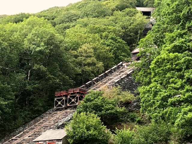 Caught a glimpse when trundling the rails of the quarry’s former inclines and terraces, a part of which has been recently restored. Powered by gravity, wagons full of slate travelled down the mountain, using their weight to pull empty wagons back up to the workface.