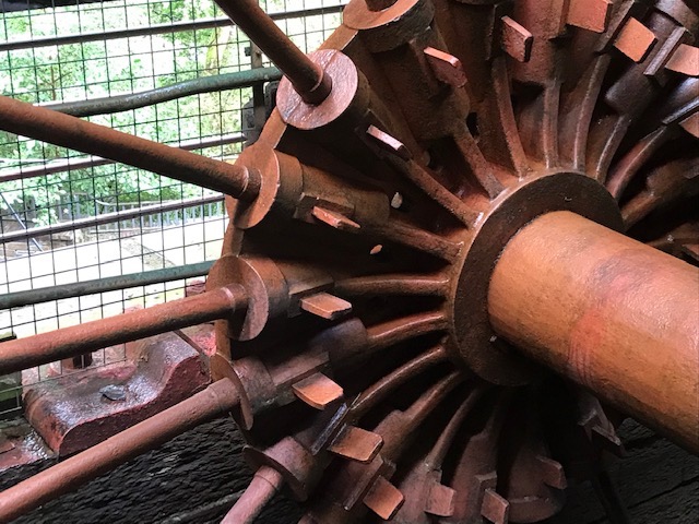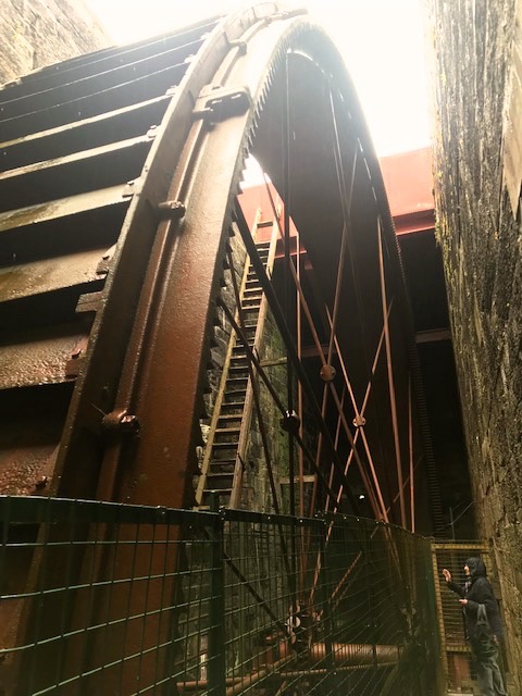 Highlights of our visit included getting up close to the works huge waterwheel, installed in 1870, driven by a stream running off Snowden’s slopes whose waters were piped across the valley. Measuring 50’ 5’ in diameter x 5’ 3” wide with a 12” axle this metal wheel is mainland Britain’s largest and sits confined in a narrow brick structure that makes closer examination a mildly claustrophobic experience.