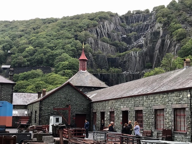 Our day out perked up when we realised what else the area offered. No-one can escape noticing that much of the mountain sides along the northern side of the valley are missing. A stark reminder of a relentless economic activity that has dominated and defined this area for at least two centuries – the mining and quarrying of slate. Turning into a large car park we came upon a barrack like old industrial complex, comprised, unsurprisingly, of slate roofs and walls. These are the Dinorwic quarry workshops, one of the imposing slate processing works that once made this corner of Wales the largest producer and exporter of slate in the world. At its late 19th century peak the industry employed 17,000 men and produced nearly a half million tons of slate a year.