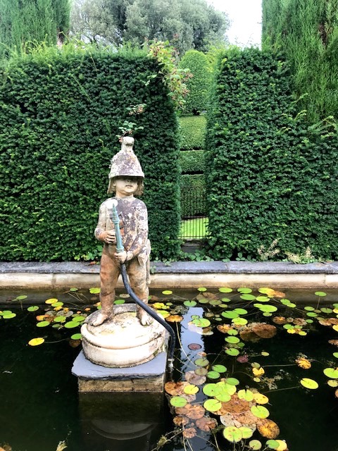 Today gardens and house are run by through separate charitable trusts. The onsite café, managed by a local lady, had lots of home made produce and her staff were welcoming and helpful. We sat out in the courtyard with coffees by a formal lily pond with its fireman putti fountain, a witty touch that typifies the place.