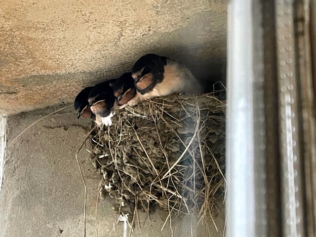 We couldn’t quite believe it when a pair of swallows started building a nest over the front door in August. Perhaps they were just practising in their spare moments. But no, it was for real of course and eggs were duly laid. Despite putting the parent birds to flight every time anyone came in or out the house they successfully incubated and hatched four chicks, and last weekend the quartet fledged, to a chorus of cheers from us. With an epic journey to southern Africa ahead and time running out for them to be robust enough to fly with the flock this late brood will need all the luck they can get to survive such an arduous and perilous journey.