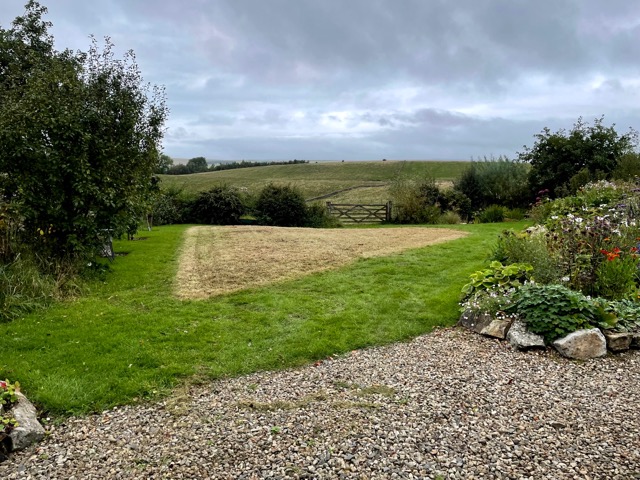 Our regular contractor had had to put off his annual visit and the meadow grasses were getting very dense and going beyond for strimming. We needn’t have worried as Chris arrived with his new acquisition, a ride on mower of a type commonly used by local authorities for wayside management which meant he could mow the whole triangular patch of sward in just minutes. The older he gets the more he loves using this kind of kit, he confides with a laugh. Being the great guy he is Chris also extended his mechanical mow onto the crags, our adjacent four acres of field, topping the nearest soft rushes and thistles, thus giving the grasses a chance to reclaim territory. A handy reminder we need him back earlier in the year to weed wipe before rushes and thistles have time to set seed, which is the only way to keep on top of their remorseless encroachment.