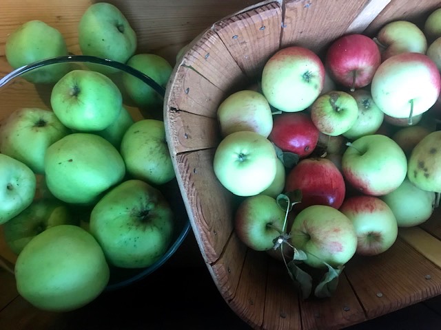 A good apple crop this year, and the damsons likewise. In previous seasons blackbirds have been raiding the dessert apples growing along the front wall but this year we’ve been particularly plagued by wasps, making the picking an extra careful operation. They’re seduced by the aroma of extra sweetness in the red skinned varieties I’ve planted for juicing, so fortunately the insects assiduous mining of the fruit isn’t a problem. A regular supply of pure apple juice is our unmatched autumn delight, with some put aside in plastic bottles for the freezer.