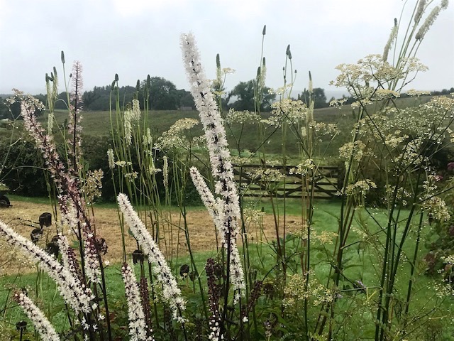 The bench overlooking the semi-circular studio bed is always a good spot to sit and take in views of a fine day. The tracery of tall multi-flowering stems are a particular delight. More surprisingly this summer, one morning before breakfast, a young adder was spied sliding out of the bed and along the path’s stone chippings. A rare sighting as they were last seen many years ago on nearby crags, sunbathing. I’m more pleased than concerned as this otherwise shy creature is an effective catcher of mice and rats and I hate having to put poison down to control numbers when natural predators (and the farm’s visiting cat) can do the job. It appears to have been a good year for these endangered and often misunderstood native reptiles, with lots of sightings up in the neighbouring forest so we shouldn’t be too surprised to find evidence of them closer to home.