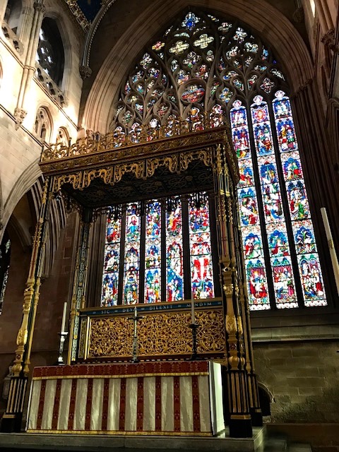 Formerly the church of the prestigious Augustinian priory, what Carlisle’s seat lacks in status and grandeur compared to say Lincoln or Salisbury, it makes up for in the way of curious treasures and warmth of welcome its staff extend the visitor. The volunteer guides here are friendly and obliging with time to chat and answer questions. The information panels in the aisles are hanging cloth banners, outlining the lives and achievements of interesting lesser known figures associated with the building down the ages. Pleased to see featured a character I’d once played – Reverend Hardwicke Rawnesley. (Diary of April 24th 2022 Castle, Lake and Tarn has more about this influential Victorian cleric & pioneering conservationist).