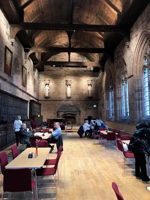 The new fratery here, adjacent the cathedral entrance, is an inviting place to relax over food and drink. Rob & I gravitated to the spacious overflow setting of the cathedral library for our delicious lunch. Continuing our walkabout along the city walls, overlooking station and lines north we bumped into a Scottish master brewer involved in the comprehensive restoration of a former long closed pub here as a bar with its own microbrewery and visitor centre.